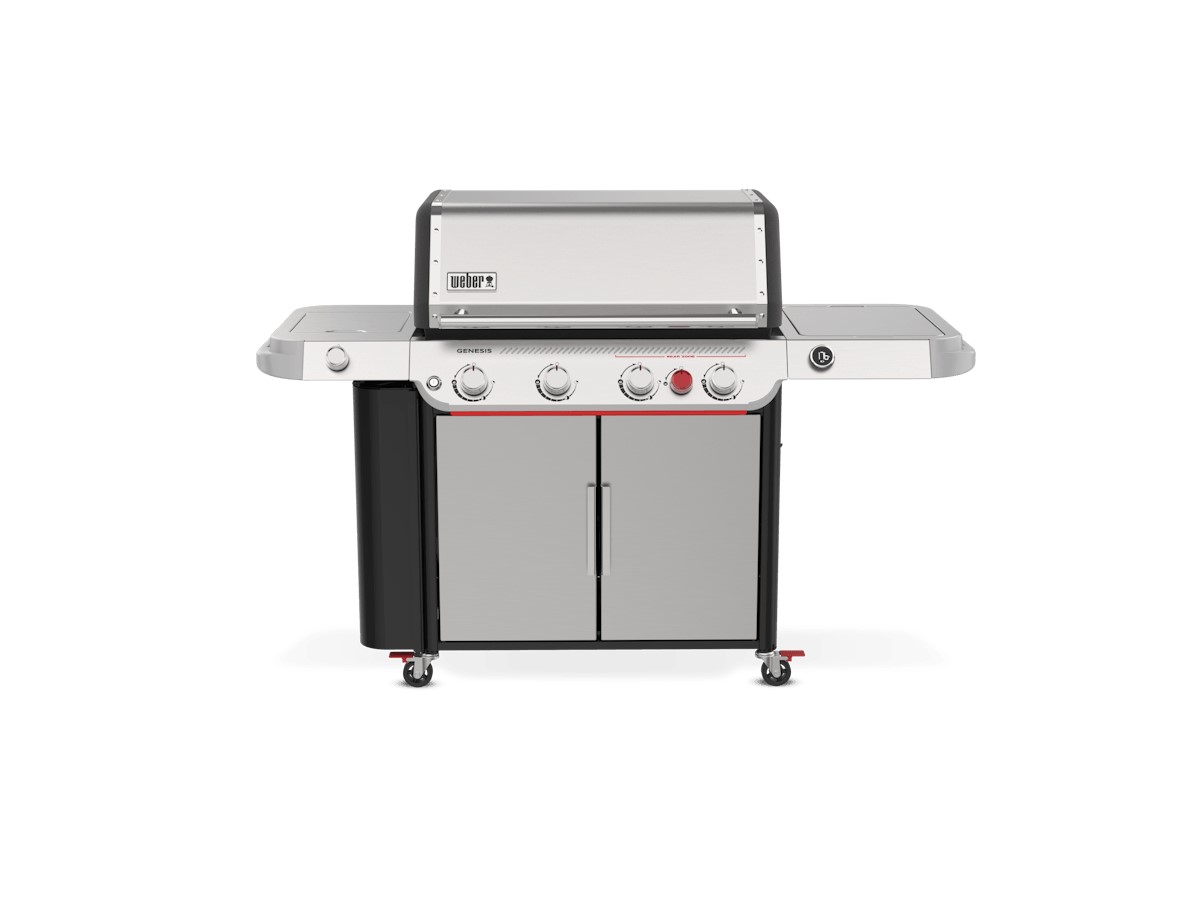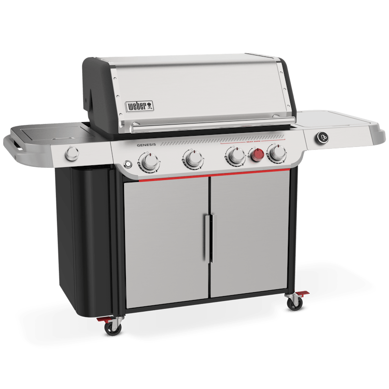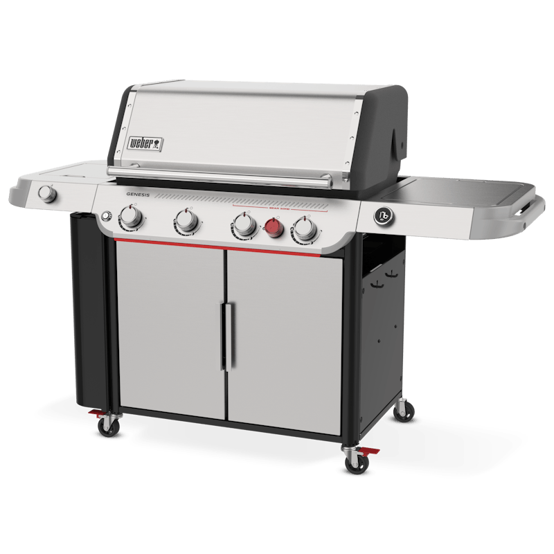Beeindrucke deine Gäste und erweitere deine Grillkünste mit dem leistungsstarken, neu erfundenen Genesis® EP-435W Gasgrill mit 4 Brennern, Sear-Brenner und Seitenbrenner. Dieser Grill liefert intensive Hitze und unglaubliches Aroma mit einem speziellen Sear-Brenner, der bis zu 50 % mehr Leistung in der extragroßen Sear Zone freisetzt, um Fleisch, Fisch und Gemüse auffällige, aromatische Grillmuster zu verleihen. Erziele gleichmäßige Hitze auf den Grillrosten mit dem hocheffizienten PureBlu Brenner-System, das zuverlässig entzündet und einen konstanten Gasfluss aufrechterhält. Freue dich auf einen Seitenbrenner zum Schmoren oder Sautieren, ein leicht ablesbares digitales Thermometer und die im Griff integrierte NIGHTVISION-LED- Grillbeleuchtung, die sich automatisch einschaltet, wenn du den Deckel anhebst. Außerdem gibt es einen erweiterbaren oberen Grillrost, der deine Grillfläche vergrößert und perfekt für kleineres Grillgut ist. Entdecke neue Welten des Grillens mit den im Lieferumfang enthaltenen Weber Crafted® Gourmet BBQ System Grillrosten, die mit einer Vielzahl von Grillzubehör (separat erhältlich) kompatibel sind, wie z. B. Sear Grate, Pizzastein, Plancha und vieles mehr. Ergänze das Weber Crafted® Basis-Rahmen-Set (separat erhältlich), zu dem verschiedenes Weber Crafted® Grillzubehör (separat erhältlich) passt. Halte Grillwerkzeuge, Gewürze und vorbereitetes Grillgut griff-, grill- und servierbereit – mit den großen, individuell gestaltbaren Seitentischen, die für Weber Works Drop-in- und Snap-On-Zubehör (separat erhältlich) geeignet sind. Organisiere und verstaue alles im großen Seitenschrank, damit du bereit bist, wenn dein nächstes Grillabenteuer ansteht.