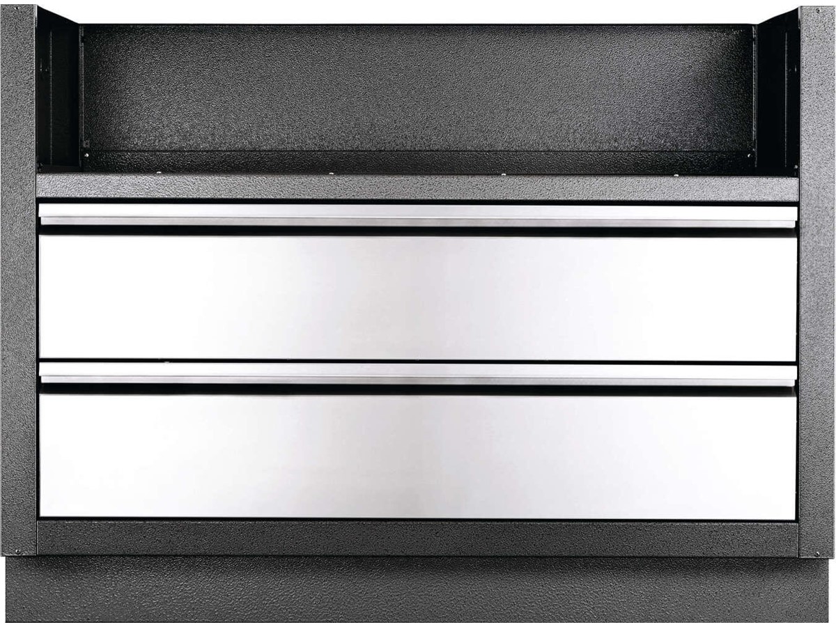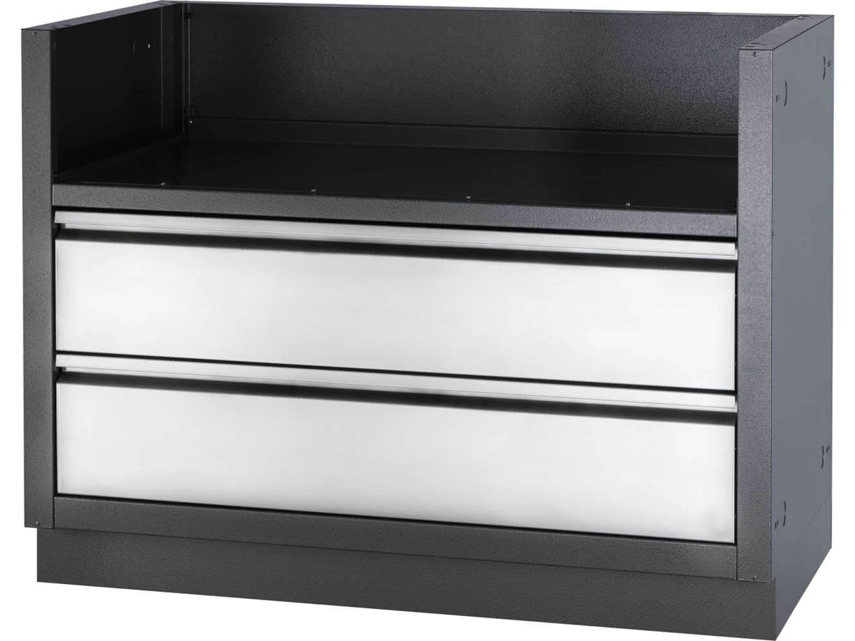 Dieser kohlefarbene, pulverbeschichtete, verzinkte Schrank zeichnet sich durch eine erhöhte Haltbarkeit aus, die durch die doppelschichtige Oberflächenbehandlung erreicht wird, und ist speziell für den integrierten 112-cm-Gas-Einbaugrillaufsatz der Serie 700 gedacht. Für die Aufbewahrung unter dem Grill sind zwei Edelstahlschubladen auf Gleitschienen montiert. Der Einbau ist kinderleicht mit Gas- und Elektro-Aussparungen. Nivellierfüße sorgen für eine gerade Oberfläche, auch wenn Ihre Terrasse nicht komplett eben ist. Verbinden Sie diesen Schrank mit dem integrierten 112-cm-Gas-Einbaugrillaufsatz der Serie 700 und den perfekten OASIS™-Schränken für maßgeschneidertes Grillen im Freien.